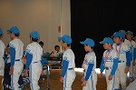 司会の橋本ヘッドコーチの合図で卒団生の入場です。