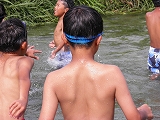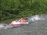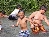 | おひるが終わると一番の楽しみ川遊びです。 着替えてからバスに乗って川遊びスポットに移動です。 |