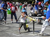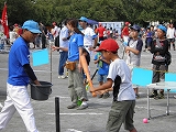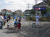| 大砂土東小の「松の子まつり」 体育館ではバザーが、校庭では各種ゲームが出そろいます。 フレンドなど、地域のスポーツチームもみんな出店を張ってます。 「パスポート」を持ってると遊び放題のゲームも多く、 フレンドの「スピードガンコンテスト」や「ホームラン競争」も 何度も何度も並んでくれる子がたくさんいました。 |