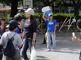| スピードガンコンテストの様子。 こっちからこっちに投げます。 |