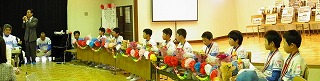 | ひな壇に卒団生が並び、鶴崎顧問のお話を聞きます | |||||||