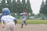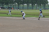 | 二塁から三塁に向かうゲンキ。いいフォームだなーと見ていたら・・・ |