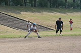 | きれいな三盗アウト。送球もいいし、ゲンキのタッチもカンペキ。 |