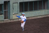 | 試合前、ベンチの前を使っての肩慣らしノック。上はゲンキ。 |