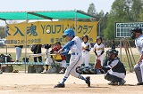 | Tコースケのバント失敗とヒッティング。右に打とうとしているのが分かります。 |