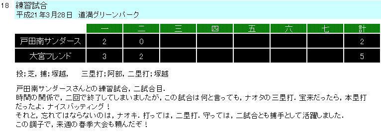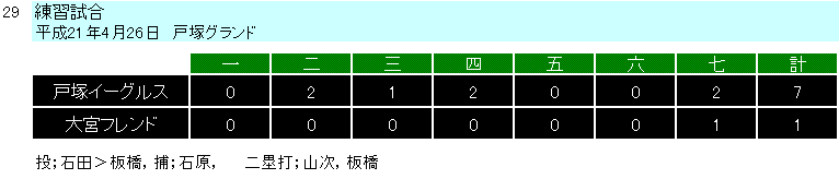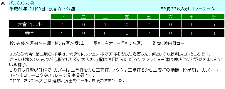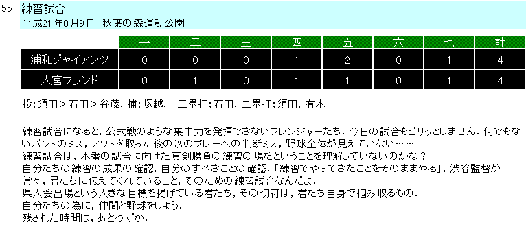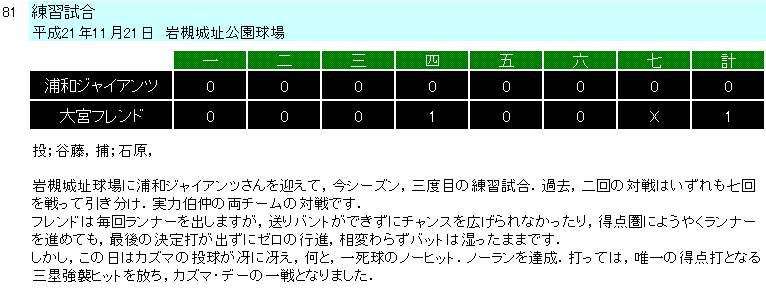 2009年度試合結果(Aチーム) |